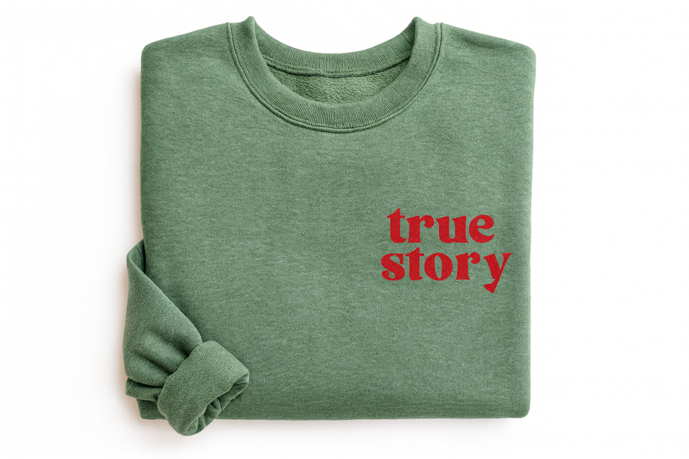 Celebrate the greatest story ever told with this True Story sweatshirt. Rooted in faith and the Christmas narrative, this cozy piece honors God's love and redemption. A heartfelt way to share your beliefs while staying warm and comfortable throughout the season.